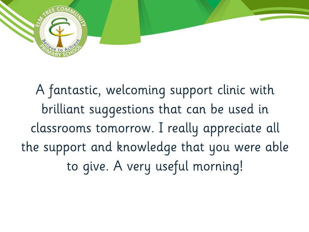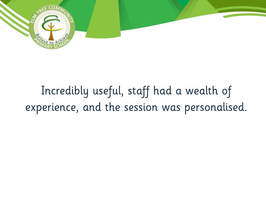 - In-reach visits to Elm Tree Primary for staff to observe lessons and work alongside identified staff on specific issues.